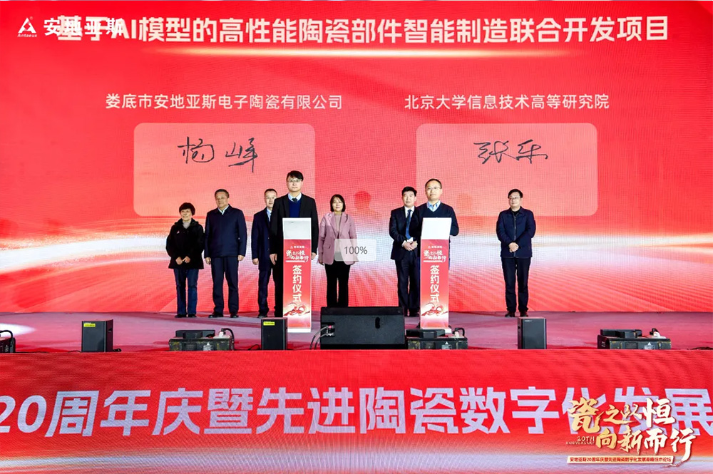 活動中,在市領(lǐng)導(dǎo)和各位嘉賓的見證下,安地亞斯與北大信息技術(shù)高等研究院簽約“基于AI模型的高性能陶瓷部件智能制造聯(lián)合開發(fā)項目”,與世界陶瓷科學(xué)院簽約“共建高性能先進(jìn)陶瓷材料聯(lián)合實驗室”。北大信息技術(shù)高等研究院高級研究員、智能物聯(lián)軟硬件產(chǎn)業(yè)化實驗室主任易海明圍繞《人工智能賦能新型工業(yè)化》,世界陶瓷科學(xué)院院士、亞太材料科學(xué)院副院士林華泰圍繞《高性能氮化硅基陶瓷及零部件研究》,分享了最新的研究成果和實踐經(jīng)驗,共同探討人工智能、硅基陶瓷的最新進(jìn)展、創(chuàng)新應(yīng)用和未來趨勢,讓大家受益匪淺。