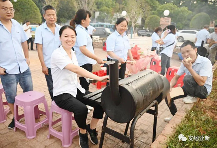 歡聲笑語隨著縷縷炊煙飄蕩在空中,大家烤的烤、扇風的扇風、刷料的刷料、準備食材的準備食材、吃的吃、喝酒的、喝可樂的不忘舉杯對飲,短短2個小時,大家相互協(xié)作,相互探討又相互調侃,整個場面是如此的和諧、放松而又自在,將所有的不愉快和壓力統(tǒng)統(tǒng)甩到了一邊。